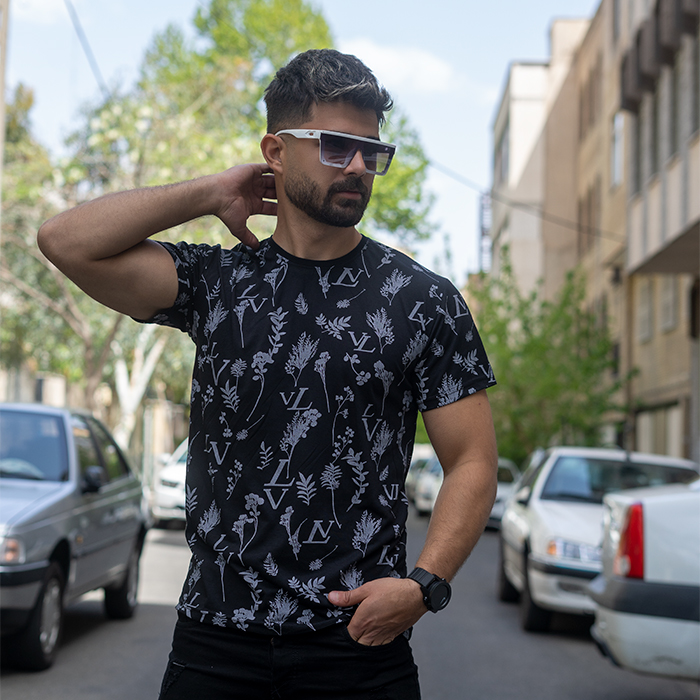 تیشرت مشکی مردانه طرح LV مدل OPAR