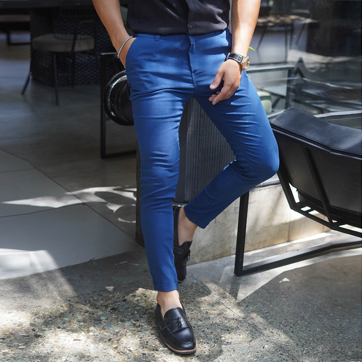 شلوار مردانه آبی مدل MOBIN