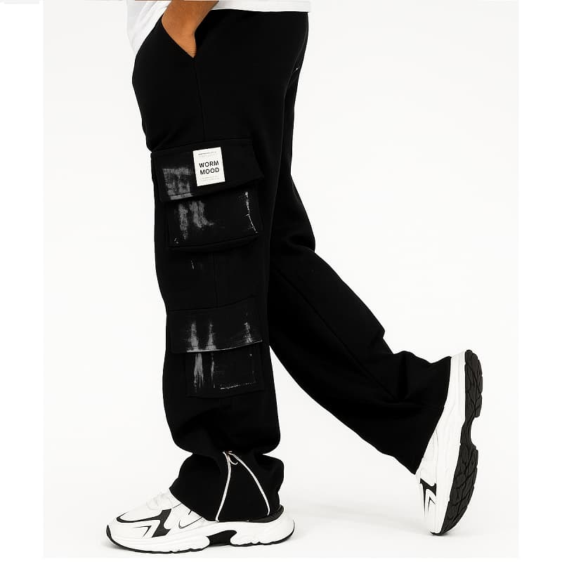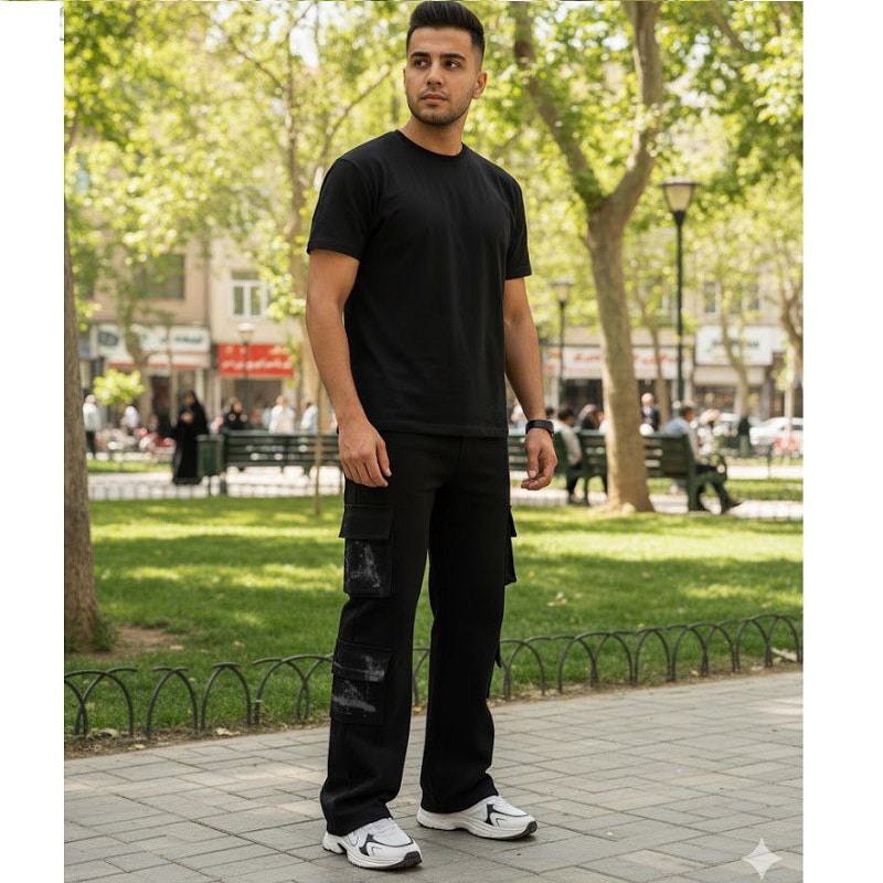 شلوار کارگو شش جیب پایین زیپ مدل sami-مشکی